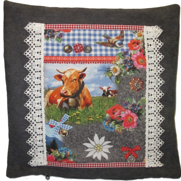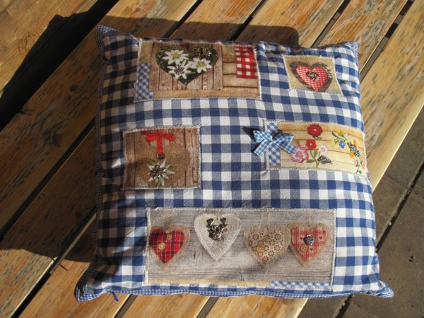 Das Kissen hat die Größe von ca. 40 cm x 40 cm. Es sind diverse Motive im Landhausstil aufgenäht, die frei wählbar sind. Ebenso die Größe und die Materialien. |