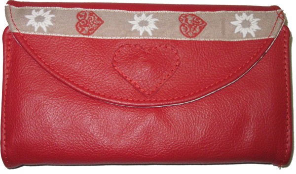 Die Geldbörse hat die Maße ca. 20 cm breit und ca. 10 cm hoch. Die Farben des Kunstleders sind frei wählbar, ebenso wie die Verschlußart. |