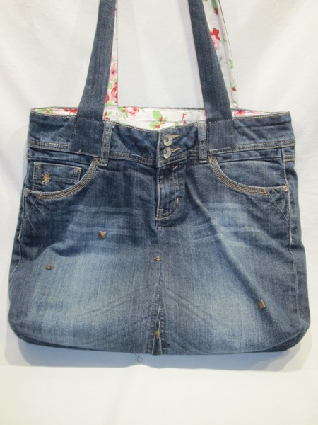 Die Jeanstasche ist ein typisches Beispiel dafür, was man aus einer "alten" Jeans alles zaubern kann. Sie hat ein Innenfutter aus Baumwolle mit kleinem Reißverschlußfach. Die Größe der Jeans spielt keine Rolle, um eine schöne Tasche draus zu nähen. |